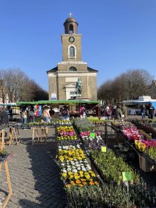 Der historische Marktplatz mit seinen bunten Giebelhäusern und der imposanten Marienkirche ist ein beliebter Treffpunkt – hier findet regelmäßig der Wochenmarkt statt.